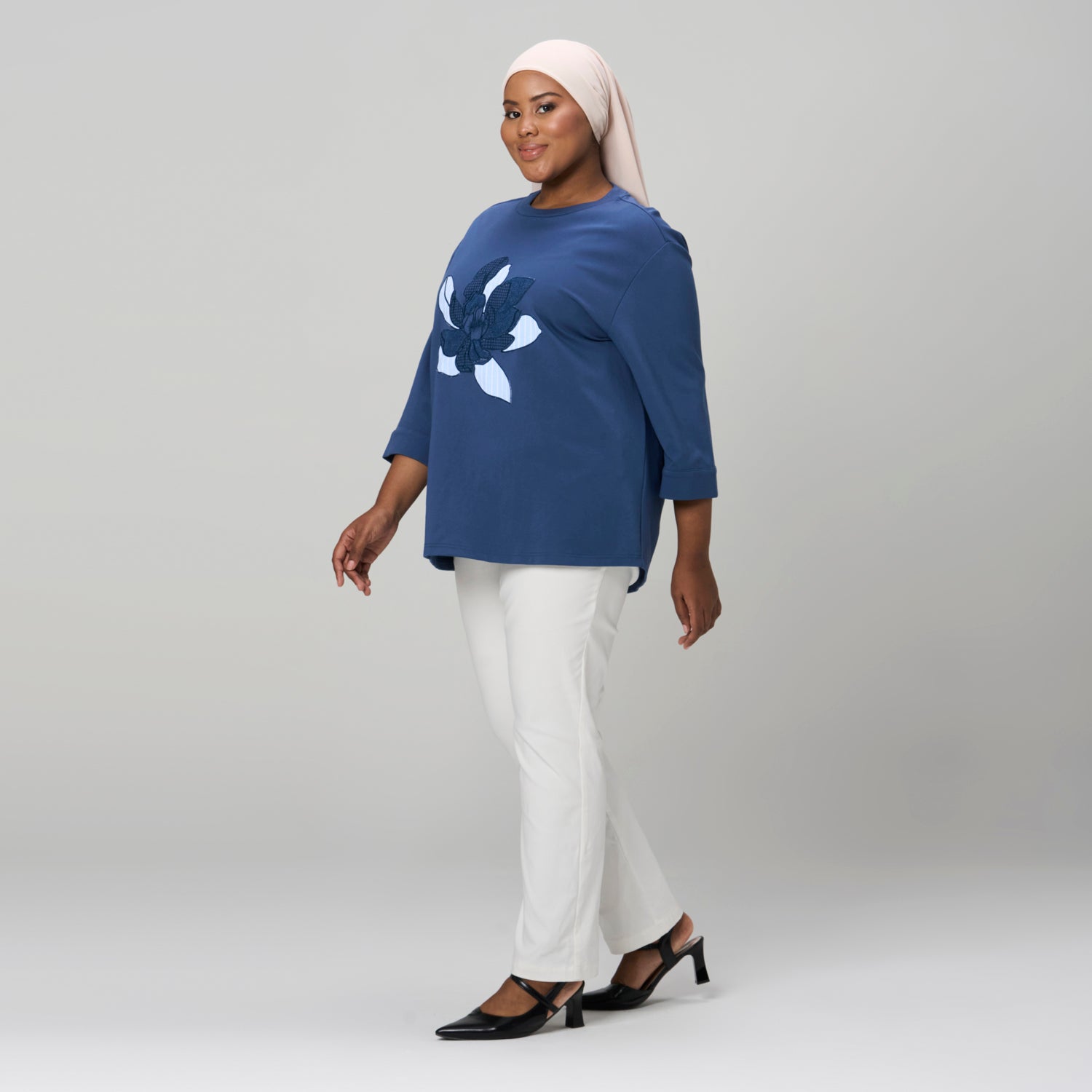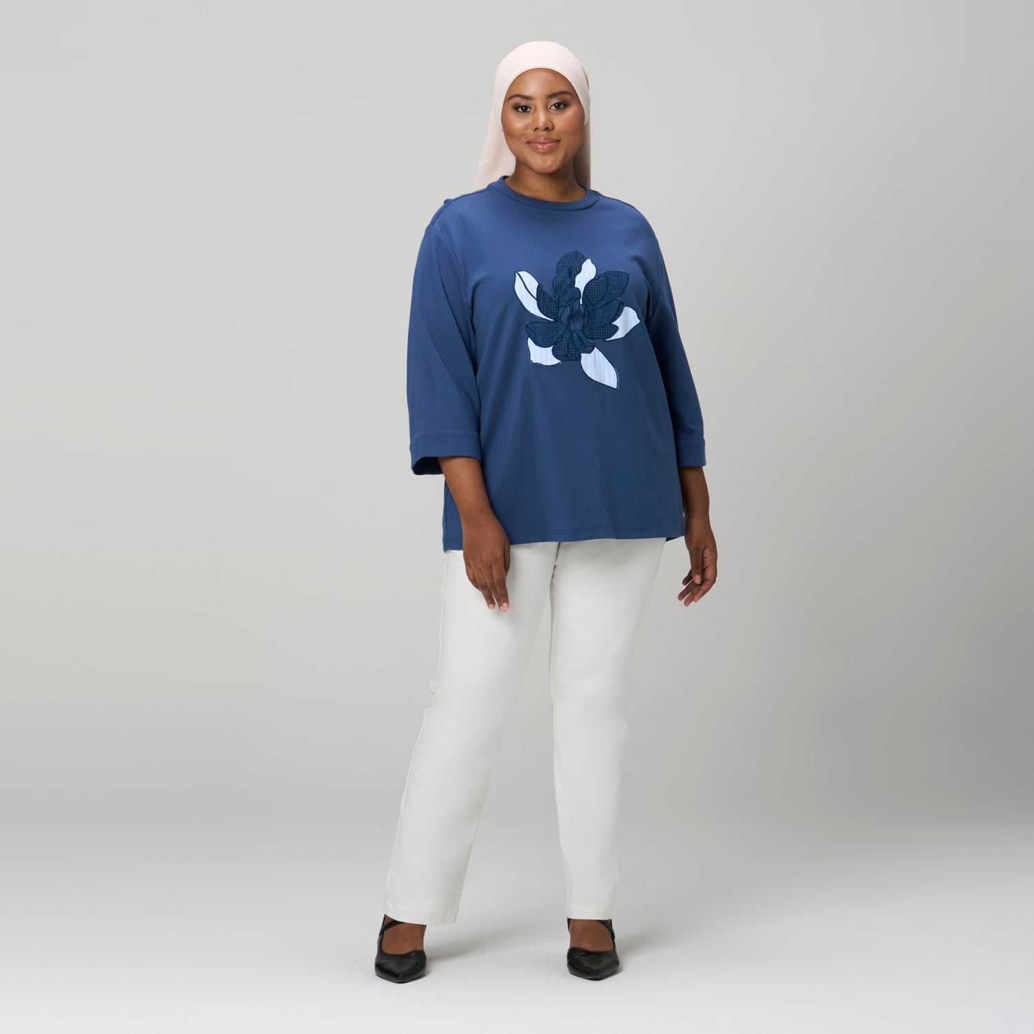 Embroidered Three Quarter Sleeve Tee