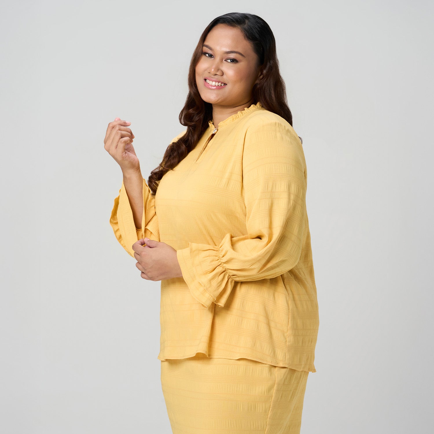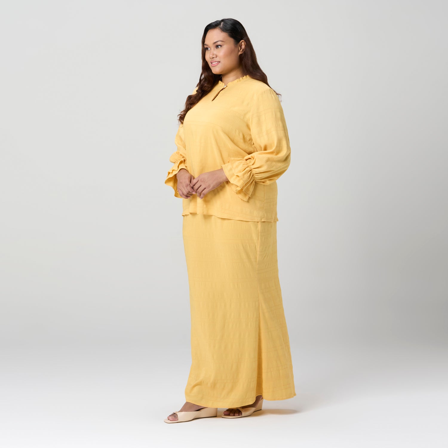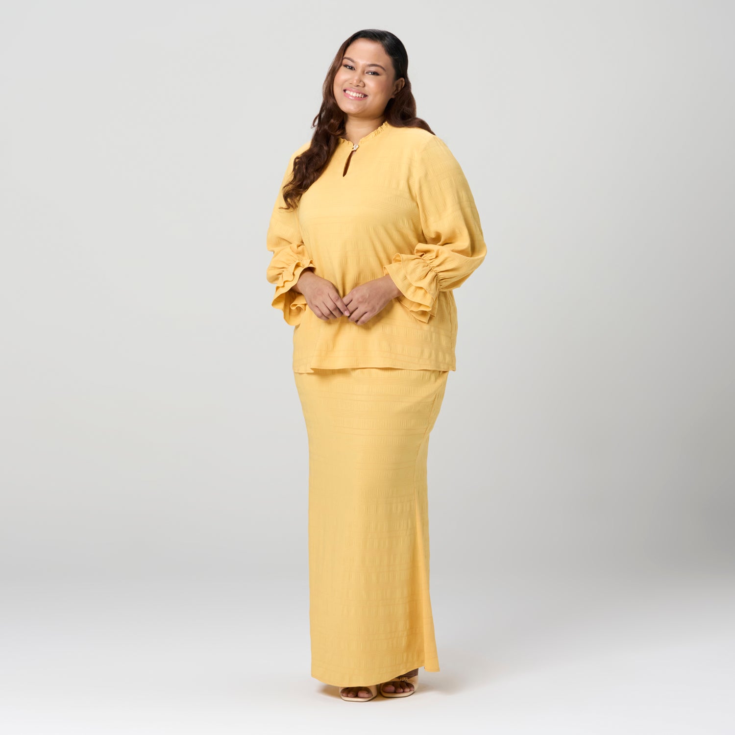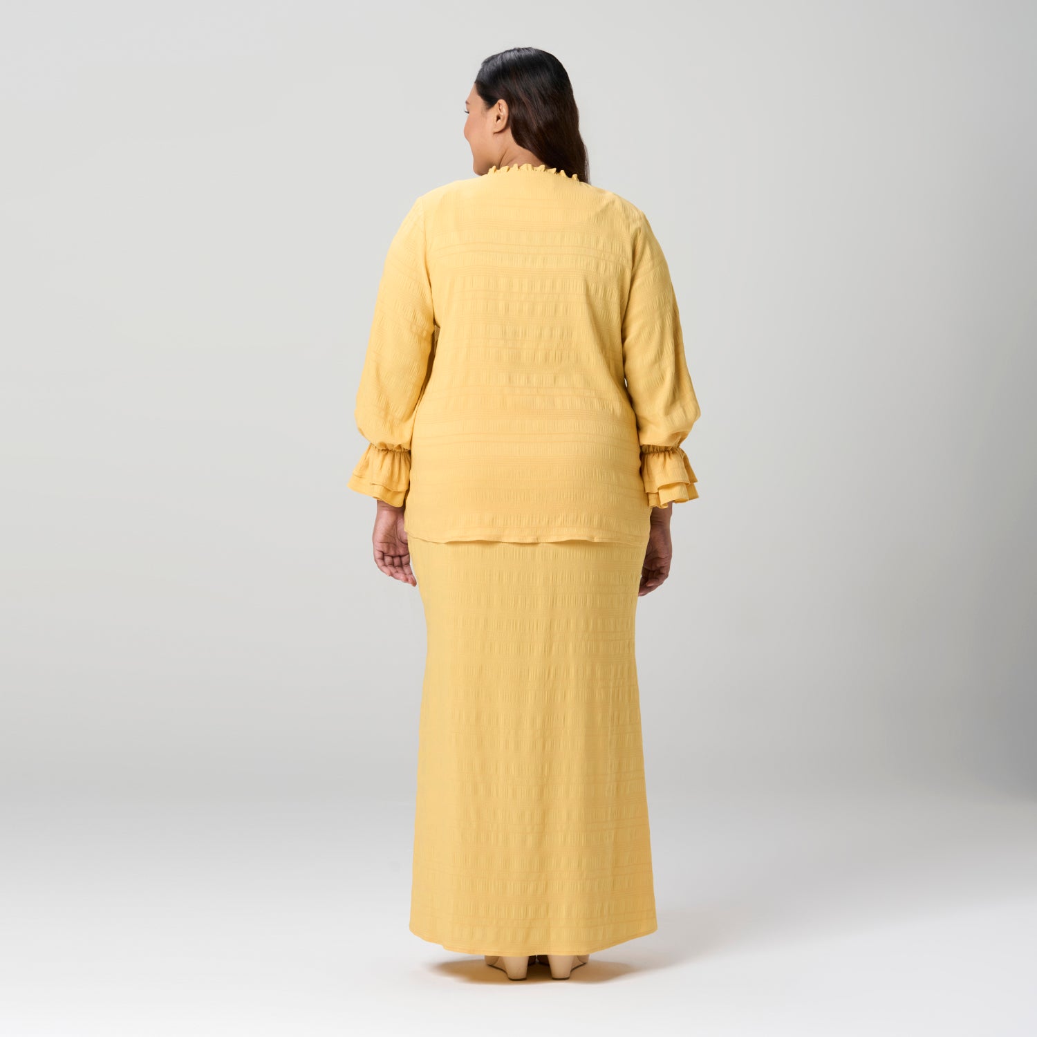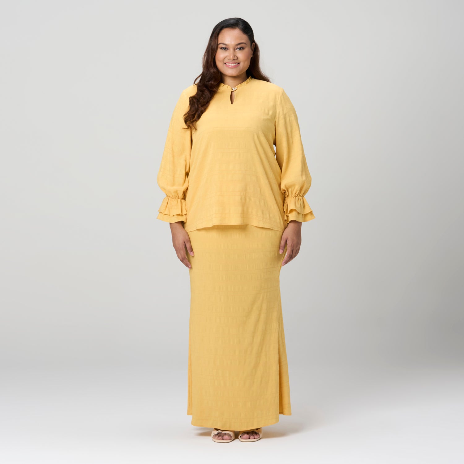 Frilly Neck Textured Kurung Set